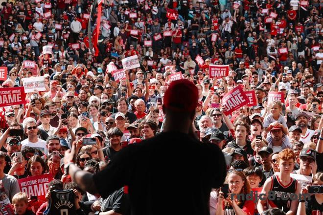 北京时间9月22日,距离季前赛揭幕战还有不到三周时间,波特兰开拓者队举办了一场球迷派对,欢迎球队传奇球星达米安-利拉德回归家乡。杨瀚森也来到现场,与利拉德拥抱。